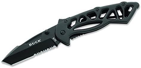 It was black. The blade black, the bottom half of the edge serrated. It had a reinforced tip and was light weight and balanced perfectly. I flipped it open and held it in my hand. I heard myself say, “I would like to feel the weight in both hands.”