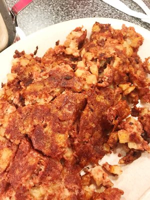 Now this dish is gone, as far as I know, from every Waffle House, but it was around back then, so you have to hear about it. It is two orders of hash browns scattered, with onions, cheese, green peppers, ham, and I cover it in chili. It was amazing. Why the restaurant ever took it off the menu is a mystery to me, but here I am with Ty glaring at me, eating one of the last Scuttlebutts I will ever eat in my life.
