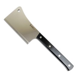 The blade is about nine or ten inches long and six wide. The blade is also about half an inch thick. The handle is big enough for two hands of a grown ass man. It is so damn heavy that if you just let gravity take hold it would shear through bone. It is the most badass piece of cutlery I have ever seen. Serves to cut through chicken bone and steel armor if it comes to that.