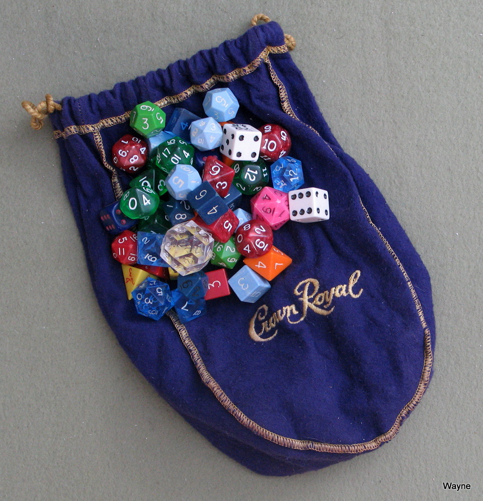Let’s jump forward a year. Now I am popular, friends with D. Dungeons and Dragons is my life and we all need dice, but nobody has any except me. McCart left an emptied out peanut butter jar full of dice at my house. They became mine, and he never asked for them. They’re the only dice we eighth graders have. Those of you who played Dungeons and Dragons in the 80s and 90s know, but I’ll tell the rest of you, I dropped those dice in a Crown Royal bag. And every morning I carried them in my backpack to Waynesville Middle School. No dice, no game. No game, no D.